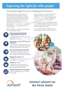 One-page summary of changes to Aged Care